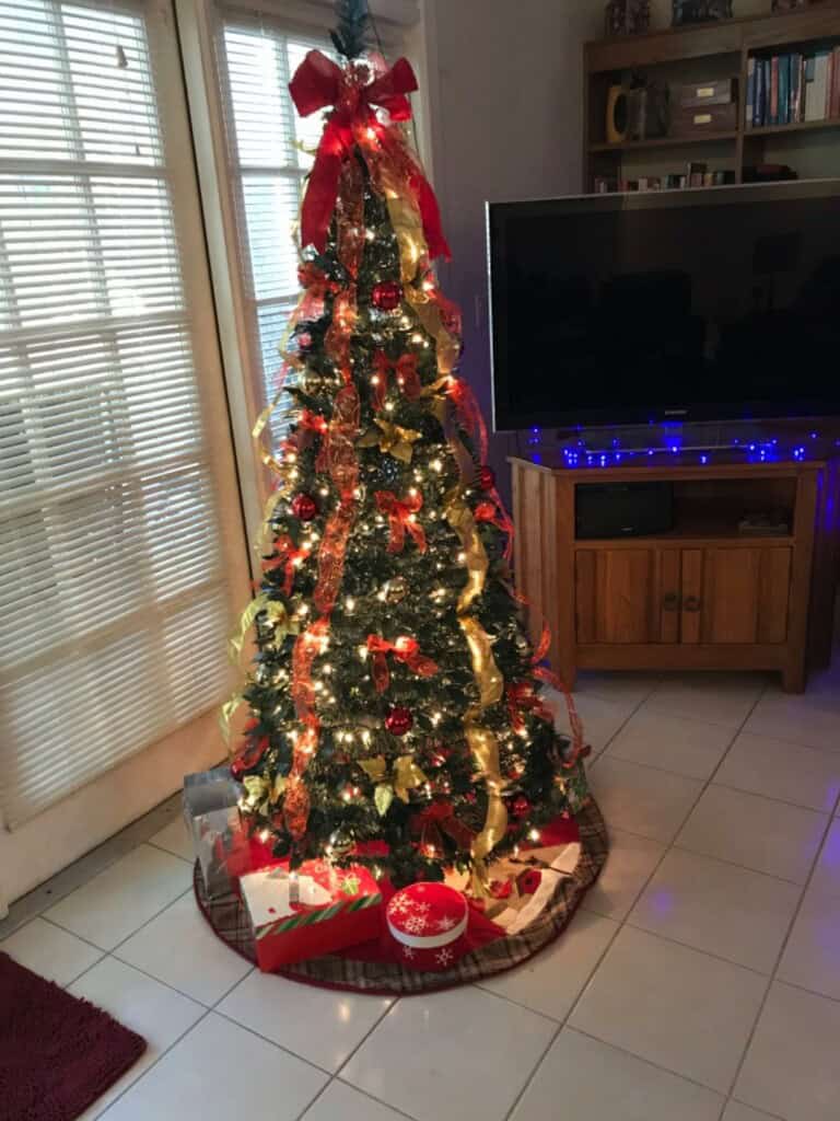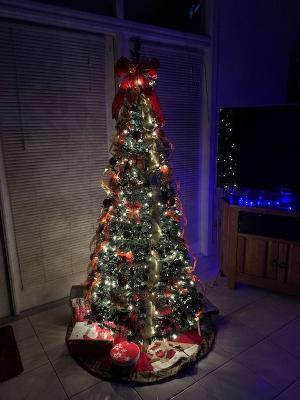 Εντάξει, έχω μεγαλώσει (δεν μου αρέσει να λέω ότι έχω γεράσει) και κάθε χρόνο έβγαζα το ογκώδες δέντρο μου και περνούσα ώρες στολίζοντάς το μόνος μου (χωρίς παιδιά, χωρίς βοήθεια). Τα φώτα τελικά σταμάτησαν να λειτουργούν, οπότε έπρεπε να προσθέσω και νέα φώτα. Κι άλλη ταλαιπωρία! Τότε είδα αυτό το δέντρο και αποφάσισα να δοκιμάσω κάτι πιο απλό και λιγότερο κουραστικό. Και ειλικρινά, μου αρέσει. Μου πήρε δύο προσπάθειες για να το στήσω σωστά την πρώτη φορά και πέρασα δέκα λεπτά για να συνδυάσω τους φιόγκους και τις κορδέλες και… ιδού! Στέκεται, είναι όμορφο και δεν θα μπορούσα να είμαι πιο χαρούμενος. Τα φώτα είναι πραγματικά εντυπωσιακά και υπάρχει αρκετός χώρος από κάτω για να τοποθετήσετε μικρά δώρα, κάτι που είναι ένα συν. Χρησιμοποίησα την κανονική μου ποδιά κάτω από το δέντρο, η οποία λειτουργούσε τέλεια. Δεν νομίζω ότι θα κρατούσε ένα βαρύ δέντρο, αλλά ειλικρινά, δεν με νοιάζει. Ο μεγάλος, όμορφος φιόγκος είναι αριστοκρατικός και τονίζει το πάνω μέρος. Αν και ήμουν λίγο σκεπτικός όσον αφορά στην τιμή, τώρα πιστεύω ότι αξίζει τον κόπο. Το κουτί που μπήκε είναι τέλειο για να το αποθηκεύσετε. Συνιστώ αυτό το δέντρο σε όποιον έχει βαρεθεί να ξοδεύει ώρες και ώρες για να στήνει το δέντρο και μετά άλλες τόσες ώρες για να το ξεστήνει.