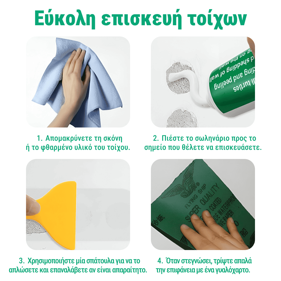- Αυτό το κιτ θα σας επιτρέψει να σοβατίσετε τους κατεστραμμένους σας τοίχους σε χρόνο μηδέν