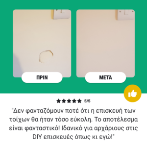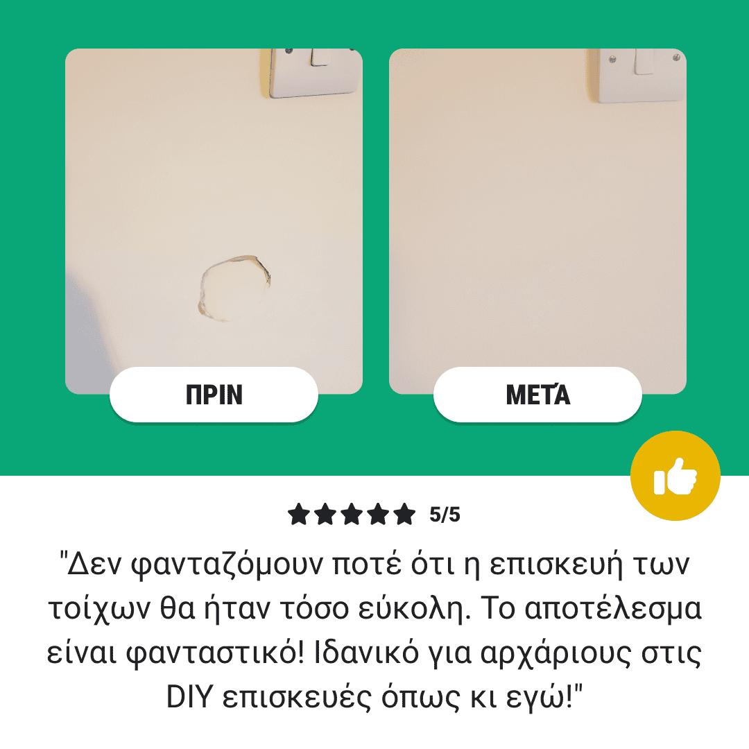 Αγόρασα το κιτ επισκευής για να φτιάξω κάποιους τοίχους στο διαμέρισμά μου. Η εφαρμογή του αποδείχθηκε πως ήταν πολύ απλή και αποτελεσματική.