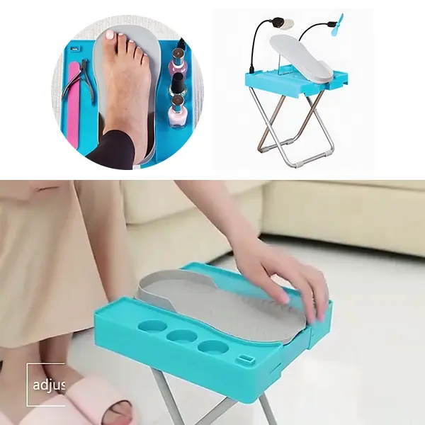 Αποκτήστε πεντικιούρ σαλονιού στο σπίτι με το NailEase! Αυτό το ρυθμιζόμενο υποπόδιο προσφέρει μια σταθερή και άνετη πλατφόρμα για να βάφετε τα νύχια σας χωρίς να σκύβετε ή να τεντώνεστε. Με ενσωματωμένο LED φως, ανεμιστήρα και διαμερίσματα, είναι ιδανικό για μια απλή και χωρίς ακαταστασία περιποίηση νυχιών.