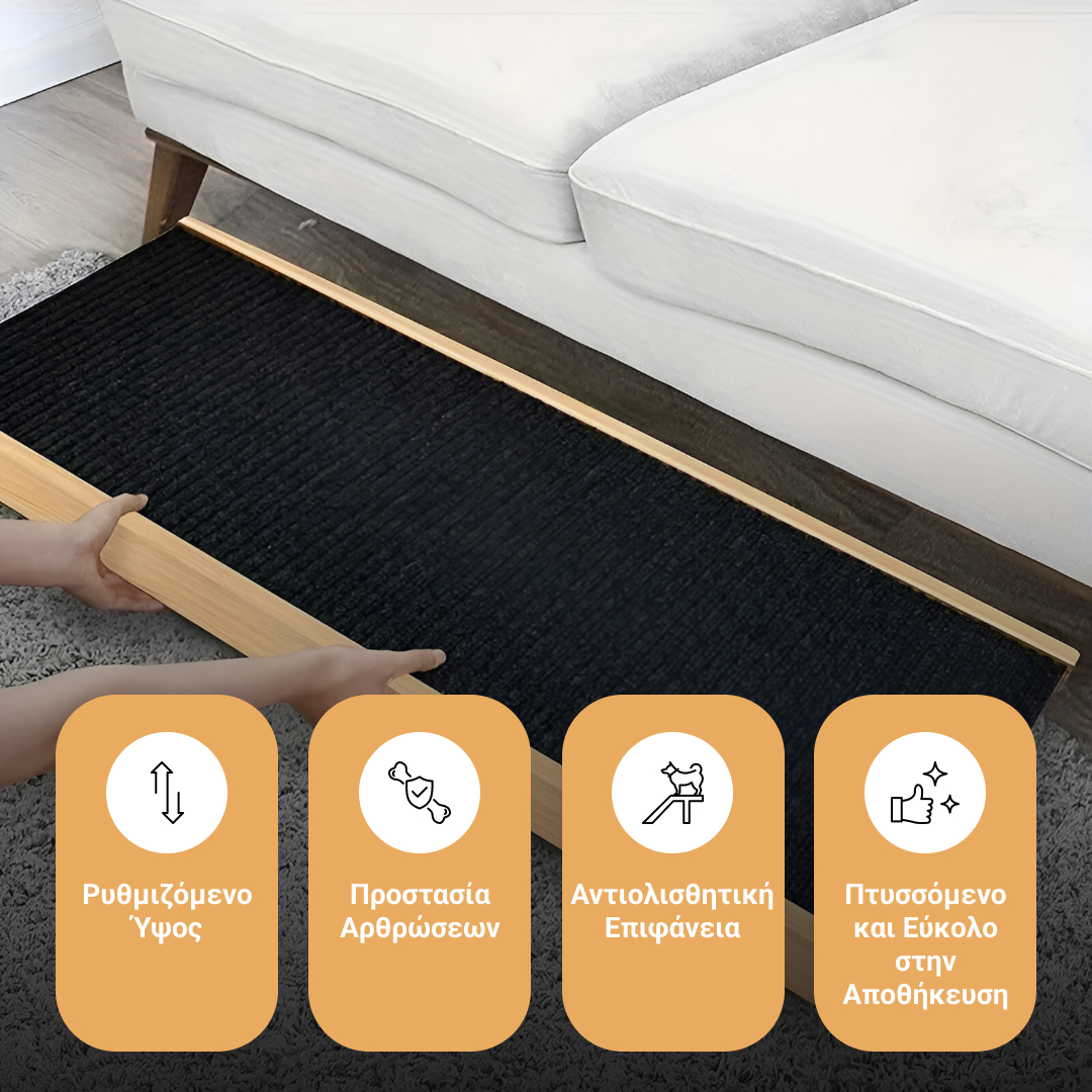 Αυτή η ράμπα διευκολύνει το κατοικίδιό σας να μπαίνει και να βγαίνει από αυτοκίνητα, κρεβάτια ή καναπέδες, προσφέροντας άνεση και σταθερότητα ενώ προστατεύει τις αρθρώσεις και την υγεία του.