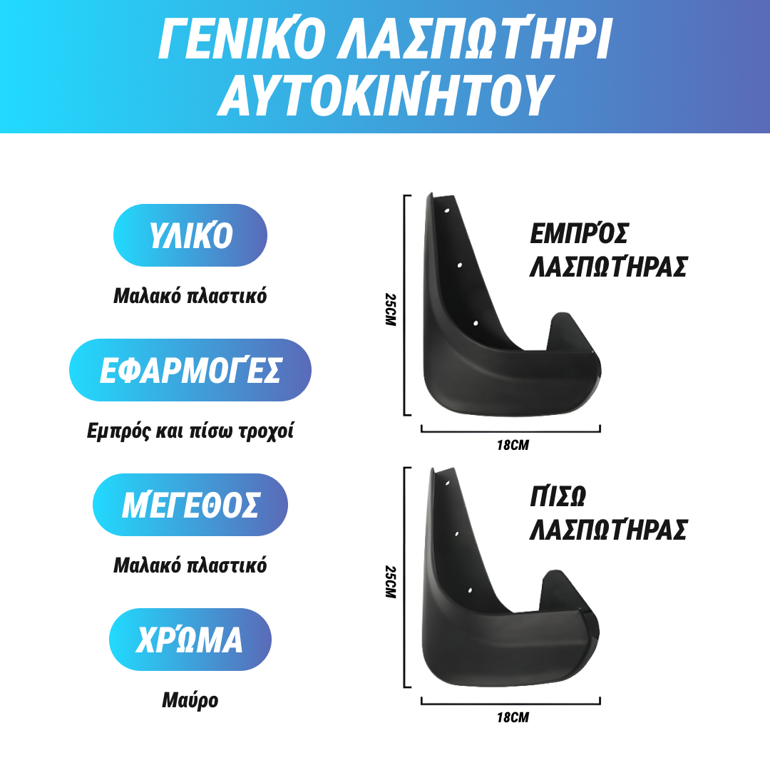 - Περιλαμβάνει 4 λασπωτήρες: 2 μπροστινούς και 2 πίσω