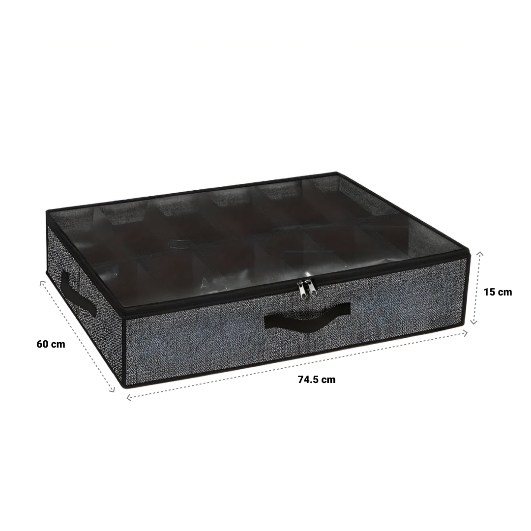 Οργανώστε τα παπούτσια σας και εξοικονομήστε χώρο με αυτόν τον πρακτικό οργανωτή που ταιριάζει τέλεια κάτω από το κρεβάτι. Το διαφανές καπάκι επιτρέπει εύκολη προβολή, ενώ οι ανθεκτικές λαβές διευκολύνουν τη μετακίνηση.